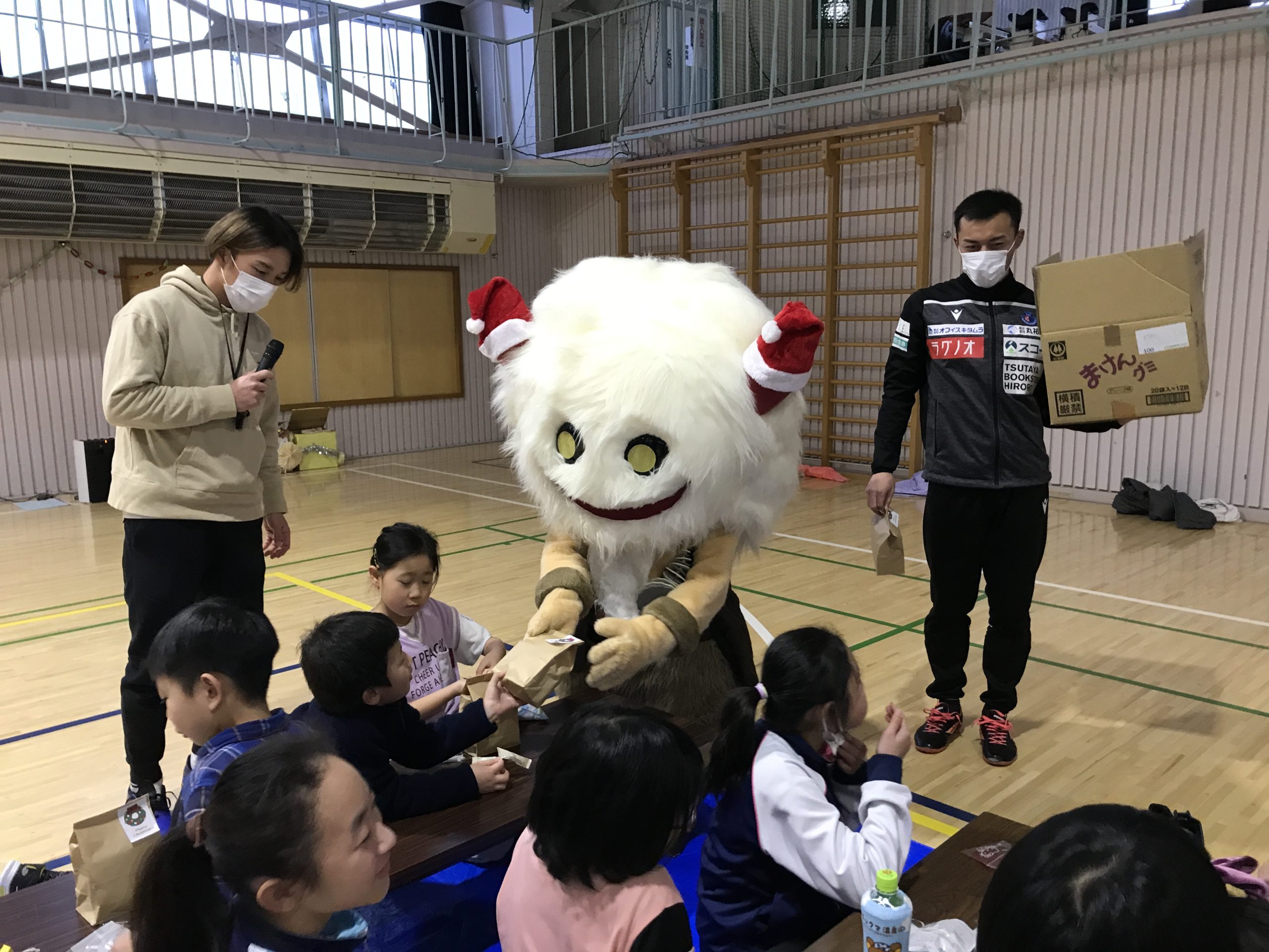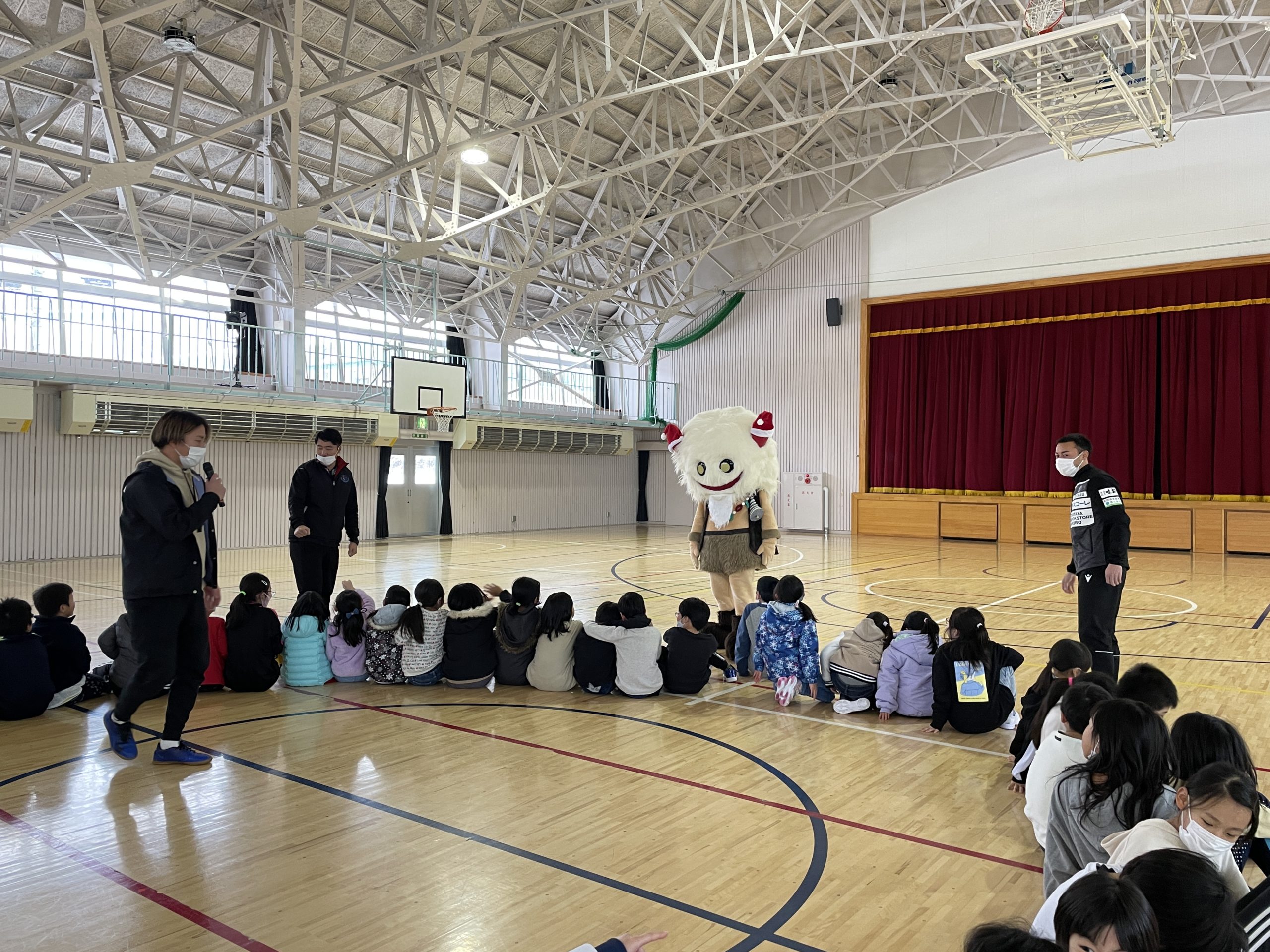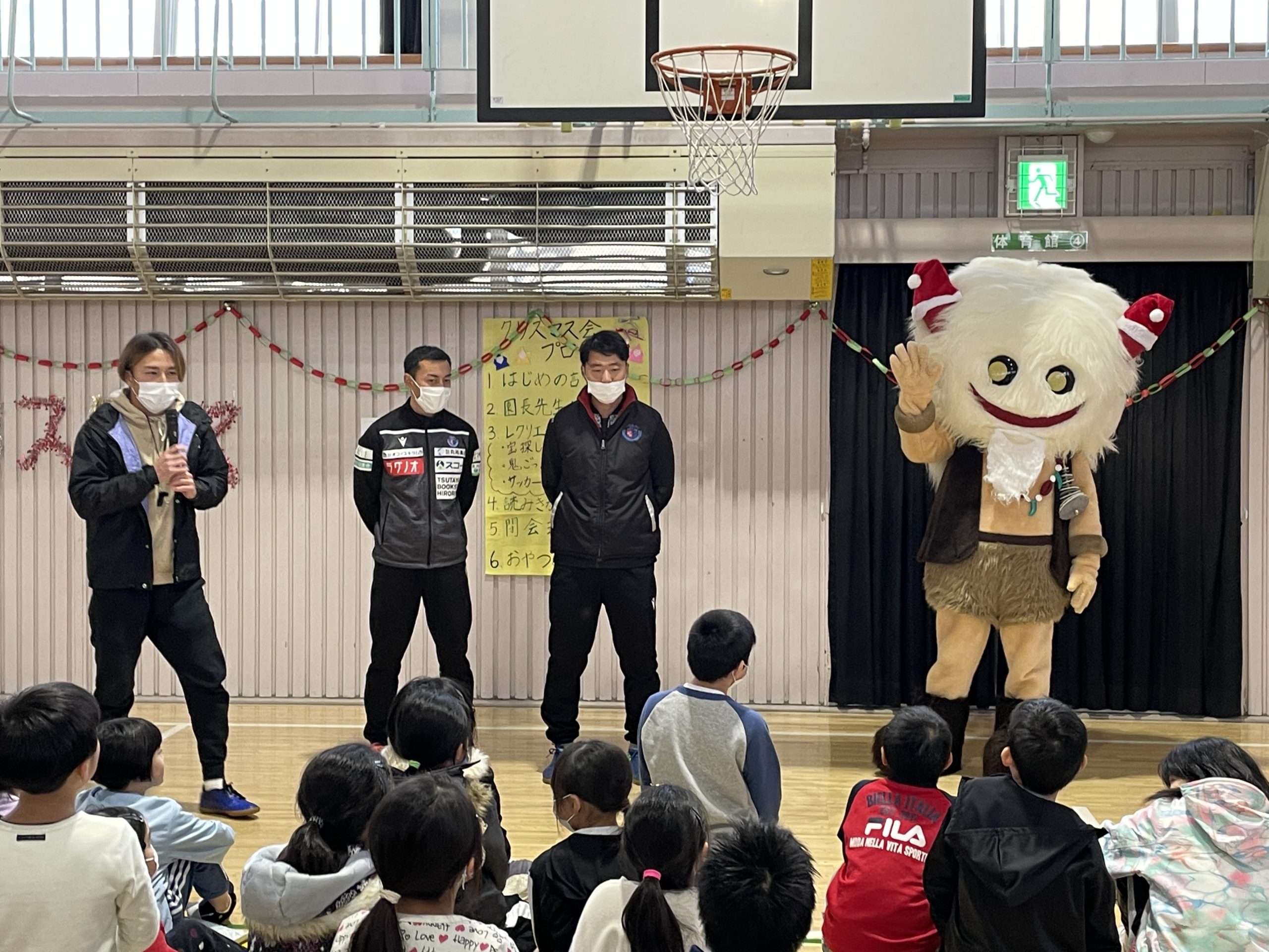 12月24日(金)に西目屋児童クラブで行われたクリスマス会に、高木 輝之選手・宮阪 淳也選手・姜 曉一監督・ブラッフェが参加しました。