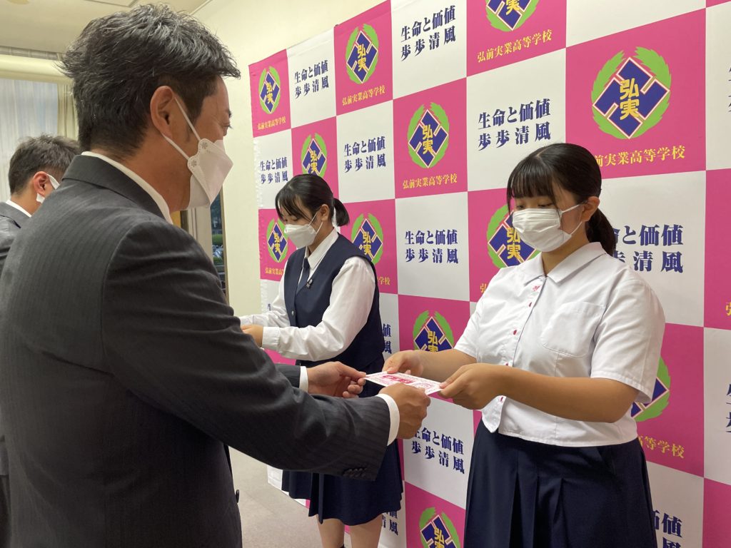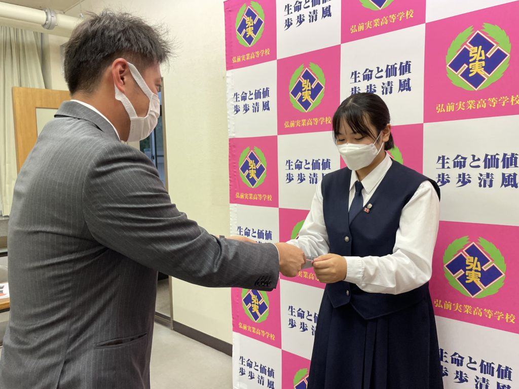 受賞した高校生は、弘前モータースクール様の高橋校長らより副賞を手渡され、お祝いの言葉をいただきました。