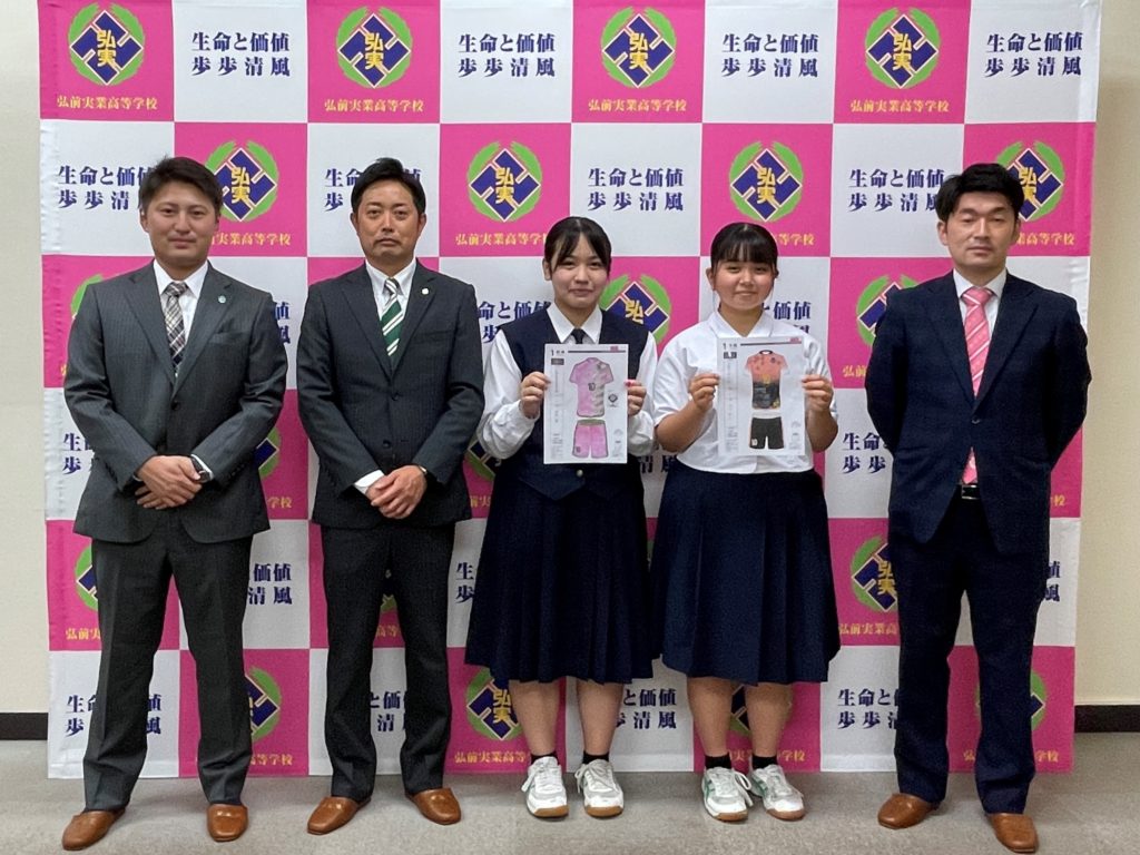 2022ブランデュー弘前FCユニフォームデザインコンペで優勝・準優勝に選ばれた高校生に作品の正式採用の報告と、