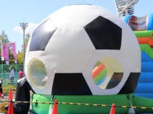 巨大エアー滑り台・サッカーボール型巨大エアートランポリンが登場!(10分 ¥500)