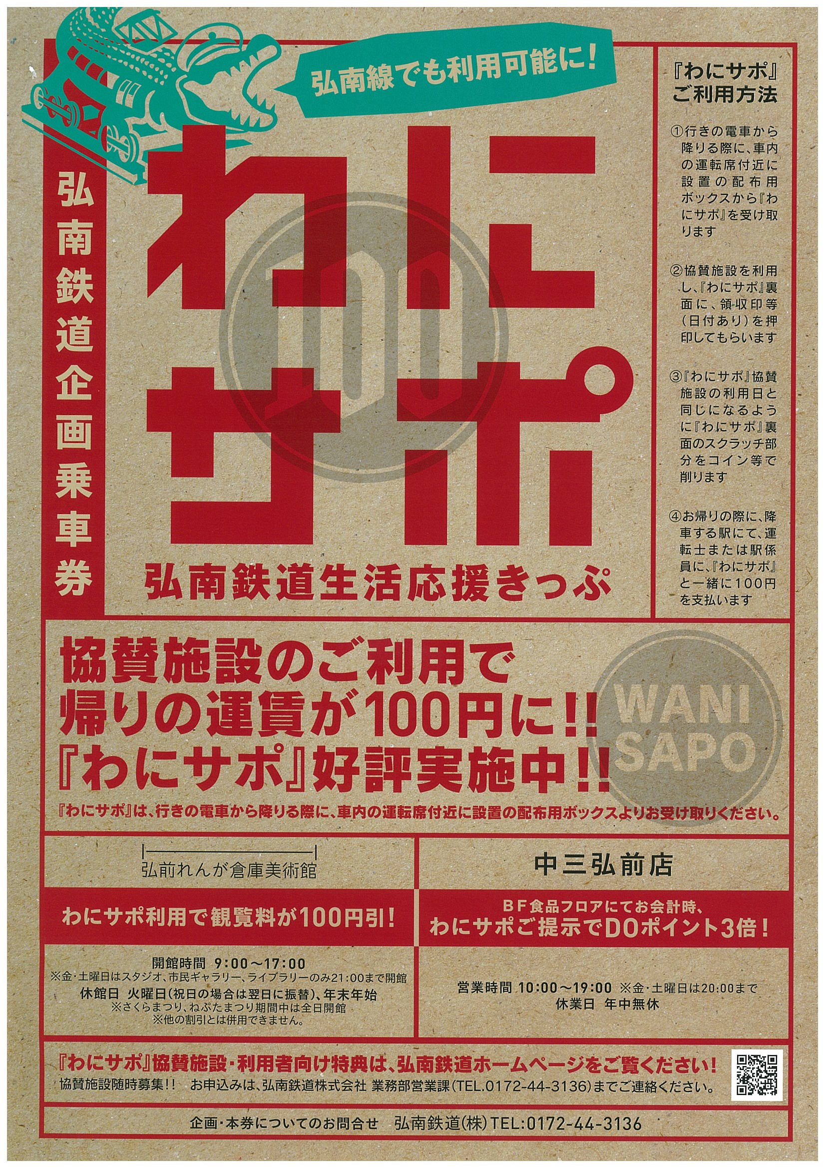 弘南鉄道生活応援きっぷ「わにサポ」利用で帰りの運賃が100円に!