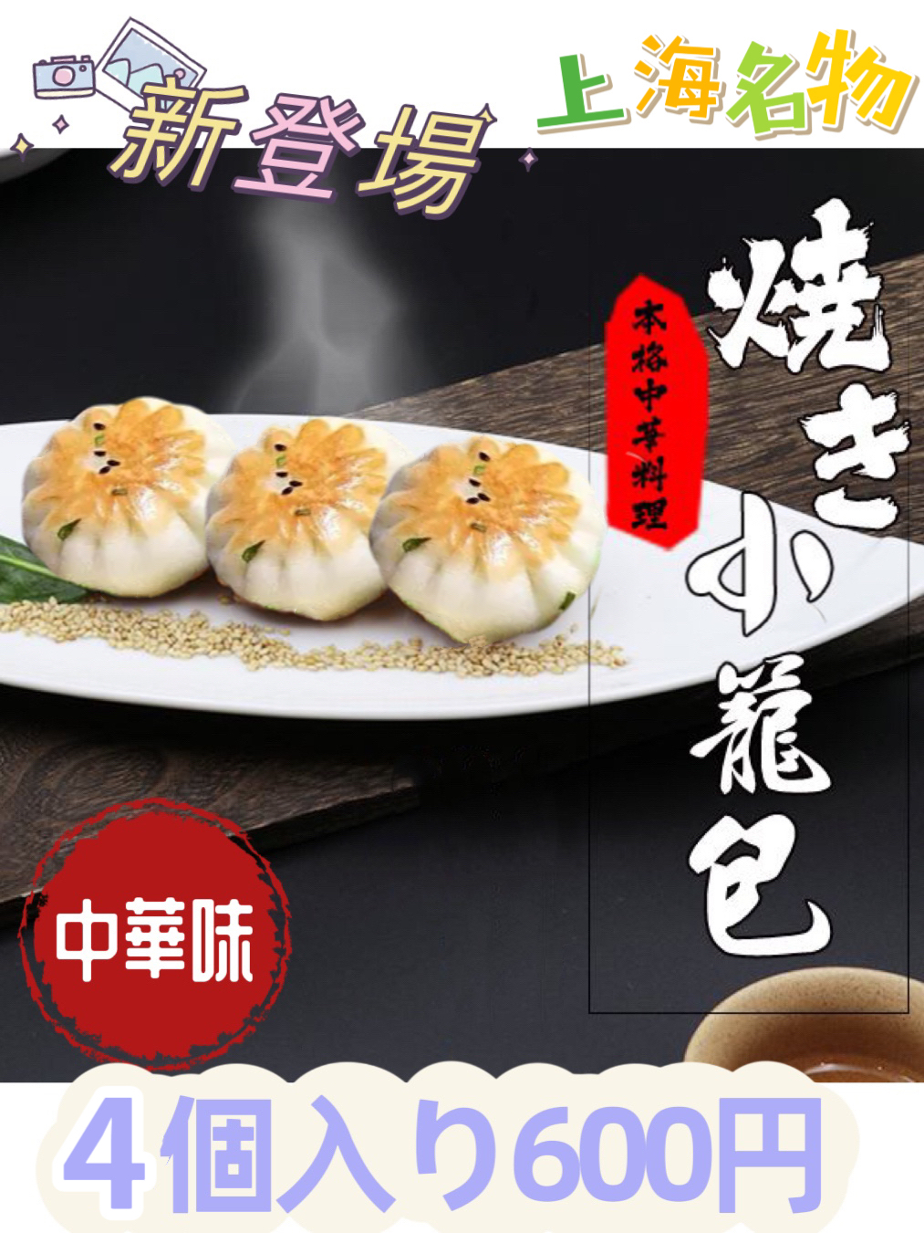 ▶中華味 中華小籠包¥600/ダンビン¥600/薄焼き餅¥400/桃饅頭¥350