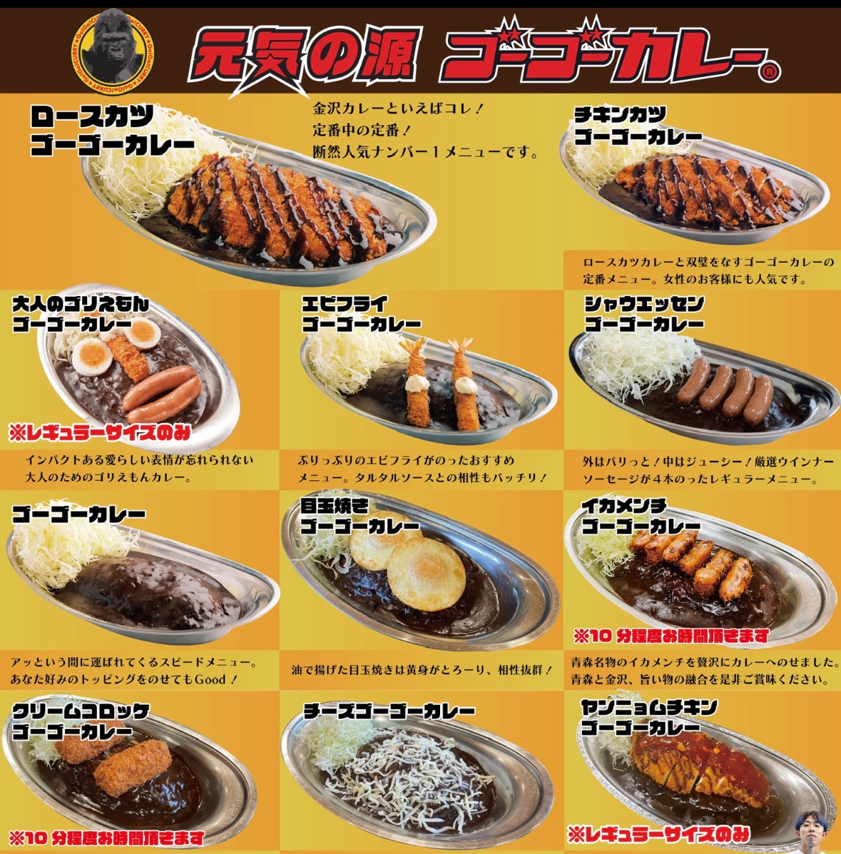 ▶ゴーゴーカレー八戸パーク ロースカツカレー ¥600/チキンカツカレー ¥600/大人のゴリえもんカレー ¥1,000/ヤンニョムチキンカレー ¥1,000