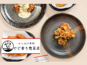 ▶やど香り惣菜店∼からあげ専科∼ からあげ 5個入 トッピング各種 ¥500~600/カレーパン ¥300/濃厚魚介まぜそば ¥650/バターチキンカレー ¥650