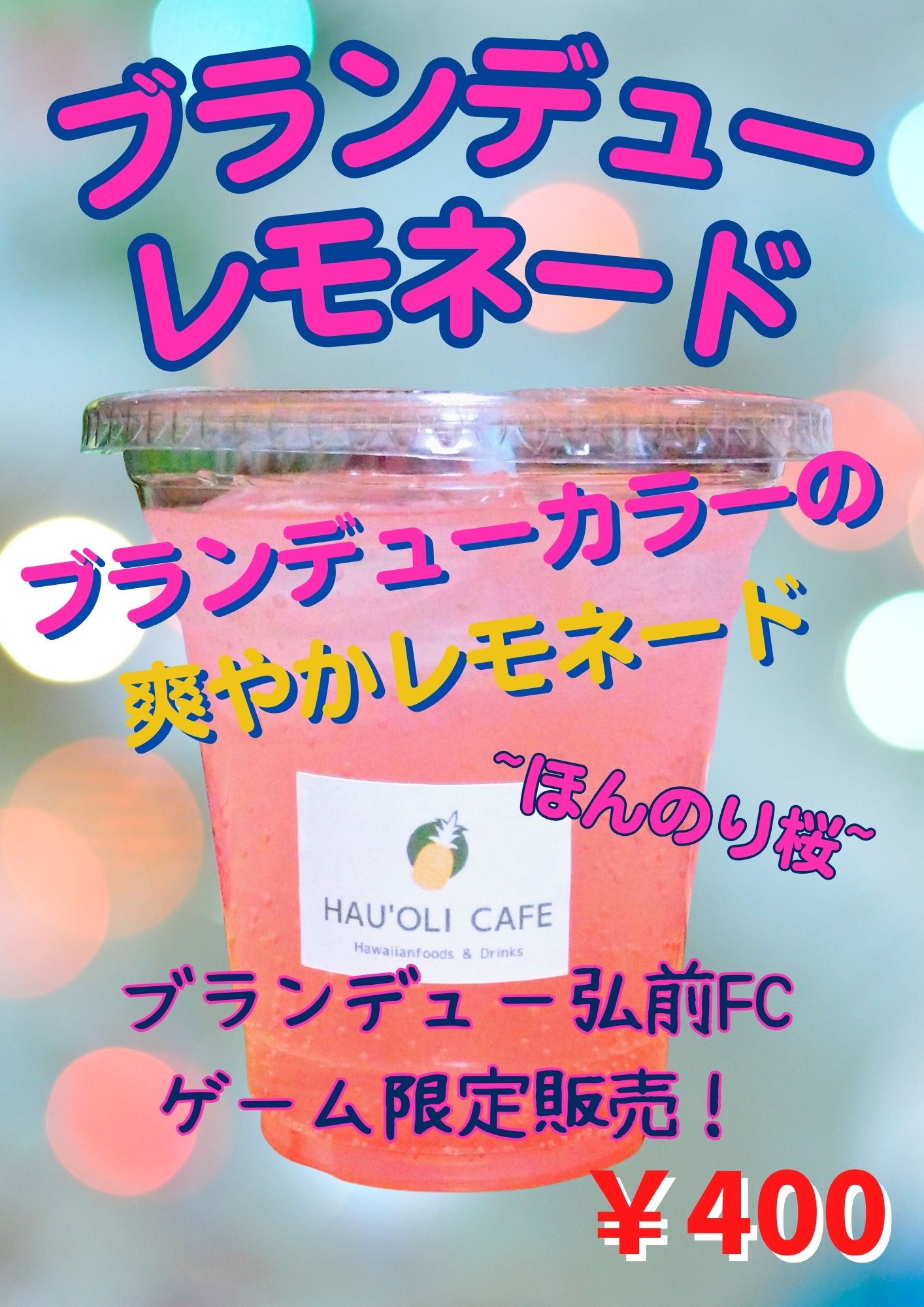 ブランデュー弘前FCを応援する地元弘前のキッチンカー「ハウオリカフェ」です。当日はブランデュー弘前ホームゲーム限定販売のドリンク「ブランデューレモネード」を始め、当店定番のハワイアンフードや観戦時にピッタリのフード類をご用意して、皆様と一緒にブランデュー弘前FCを応援します!