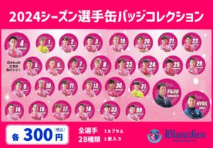前回の試合では大人気のため早期完売となってしまった選手の顔写真が入ったオリジナル缶バッジ!山本富士雄監督と姜暁一コーチを追加して再登場!ぜひ試合前にガチャを回して推しの選手をゲットしよう!