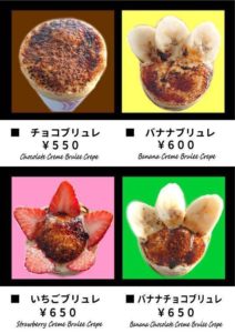 ▶Crepe&cafe Piyo MOGUMOGU ホットコーヒー アイスコーヒー ¥300/クリームブリュレクレープ ¥500~肉まきおにぎり棒 ¥400~