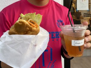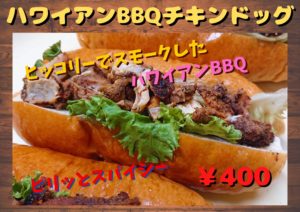 ▶Hau’oli CAFE ハウオリ・カフェ ハワイアンスペアリブ ¥400/横須賀ポテチパン ¥300/ハワイアンBBQチキンドッグ ¥400/カレー番長の旨口カレー ¥650