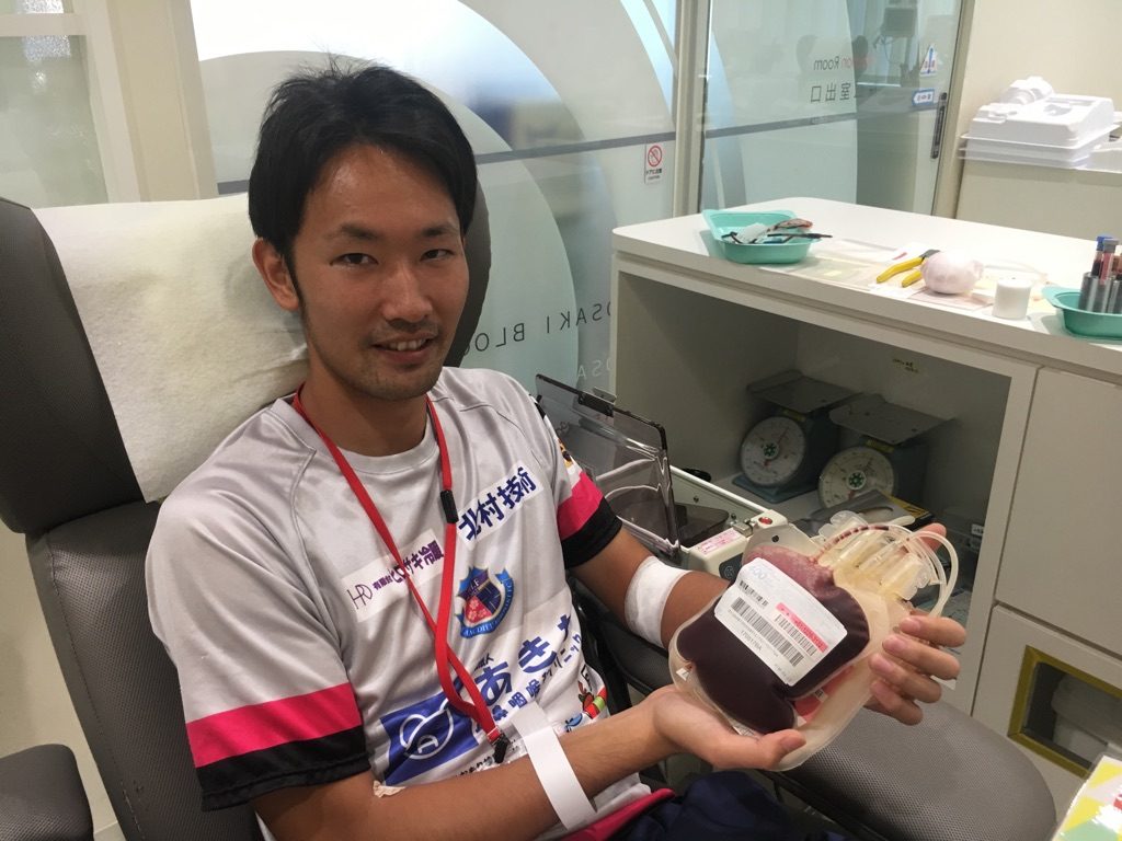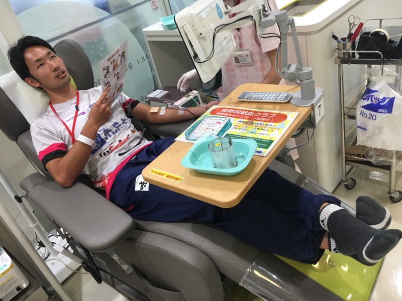 そして献血終了!!「大事に使ってください!」と荒井選手!お疲れ様でした!