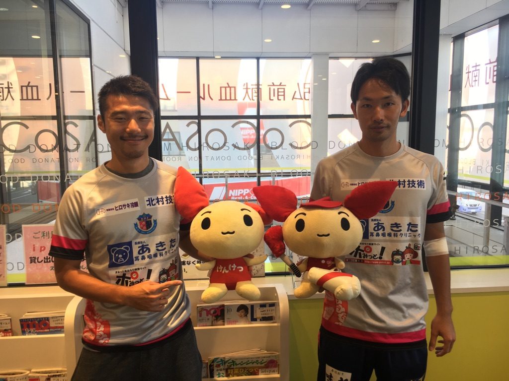 一足先に荒井選手と姜選手が「弘前献血ルームCoCoSA」に行って献血にご協力させていただきました!