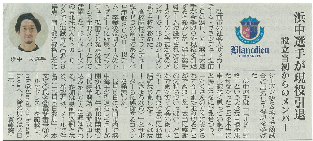 濱中 大選手の現役引退および引退セレモニーについての記事が下記の通り掲載されましたのでお知らせします。