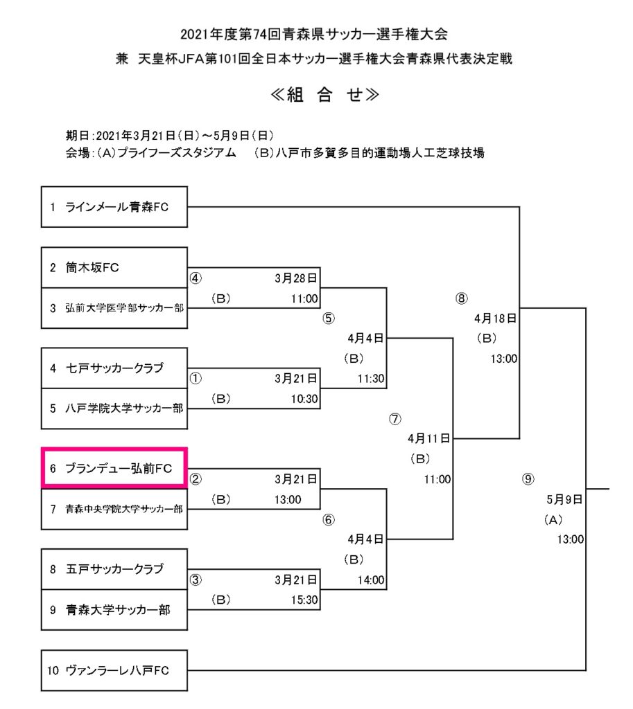 「2021年度第74回青森県サッカー選手権大会兼天皇杯JFA第101回全日本サッカー選手権大会青森県代表決定戦」の組み合わせが決定しましたのでお知らせいたします。