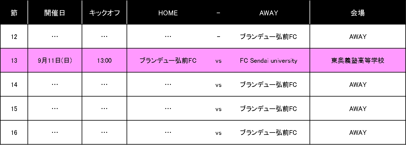 ※AWAYでの開催となる12節・14節・15節・16節の詳細につきましては、改めてお知らせします。