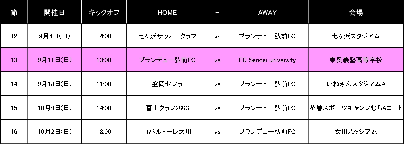 2022シーズン東北社会人サッカーリーグ1部 2次ラウンドの試合日程が決定いたしましたのでお知らせいたします。