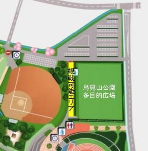 観戦可能エリアは下記の通りとなります。フェンス外からのみ観戦可能となりますので、あらかじめご了承ください。