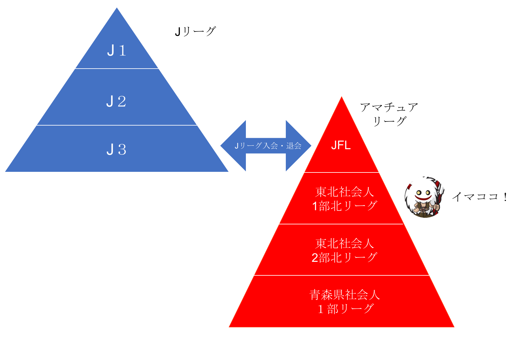 「東北リーグで1位になると、全国地域サッカーチャンピオンズリーグ(地域CL)と言うリーグの出場権が得られるっふぇ。そのリーグで勝ち進み、1位と2位がJFL昇格権を得るということだっふぇな」